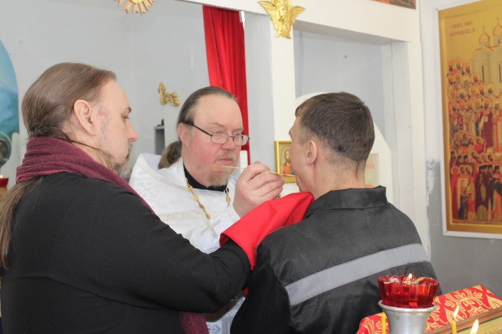 14 января в храме в честь Новомучеников и Исповедников Церкви Русской г. Каинска иерей Михаил Прут, помощник начальника СИЗО-2 по работе с верующими, совершил Божественную литургию. В этот день Святая Церковь отмечает праздник Обрезания Господня и память Василия Великого.