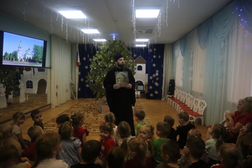 16 января/четверг. В храме во имя святого апостола и евангелиста Луки г. Купино состоялась беседа с воспитанниками МКДОУ детского сада «Солнышко» г. Купино, которую провел иеромонах Мелхиседек, настоятель храма, он рассказал воспитанникам детсада о празднике Богоявления и об истории храма во имя святого апостола и евангелиста Луки. По завершении беседы батюшка ответил на вопросы детей.