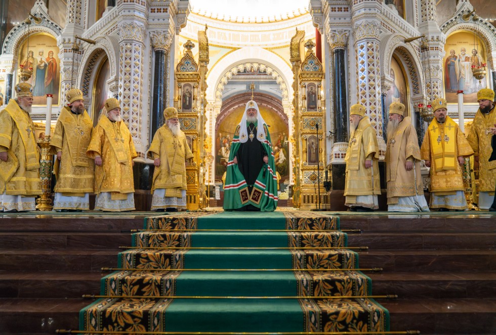 В этот знаменательный день Святейший Патриарх Кирилл совершил в интронизационных облачениях Божественную литургию в кафедральном соборном Храме Христа Спасителя в Москве. По прибытии в храм поклонился мощам святителя Филарета, митрополита Московского.