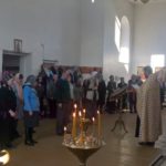 По окончании Литургии был отслужен молебен, за которым помолились о здравии и спасении родных и близких. По его завершении молящимся был преподан напрестольный крест для целования.
