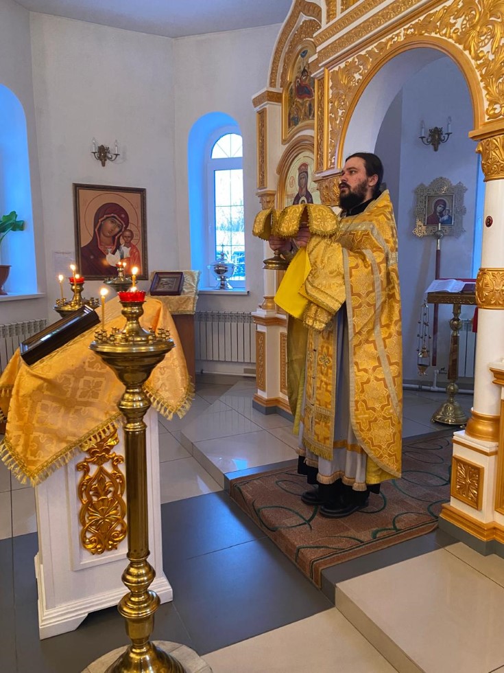 31 января, в день поклонения веригам ап. Петра и блж. Максима Тотемского, иерей Антоний Нечепоренко совершил Божественную литургию в храме во имя св. равноапостольного великого князя Владимира г. Карасука.