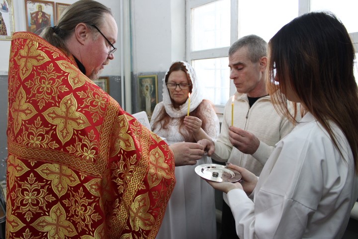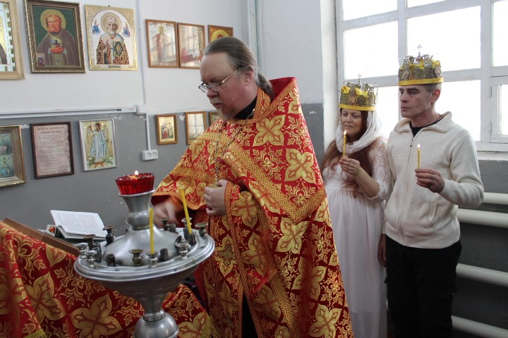 17 февраля в храме в честь Новомучеников и Исповедников Церкви Русской, расположенном в СИЗО-2 г. Куйбышев, было совершено Таинство Венчание. Осужденный Евгений венчался с рабой Божией Ксенией.