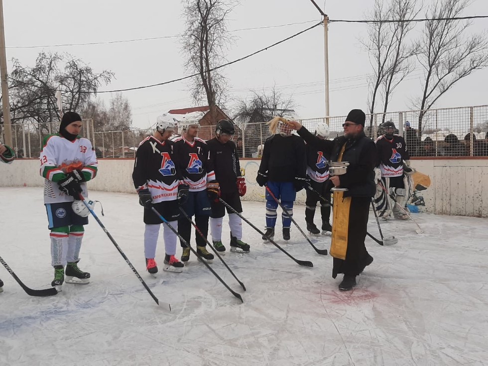 В этот день в селе проходил традиционный турнир по хоккею, посвященный 80-летию Великой Победы. Протоиерей Евгений сказал напутственное слово спортсменам и окропил команды святой водой. Команда села Половинного выиграла золото.