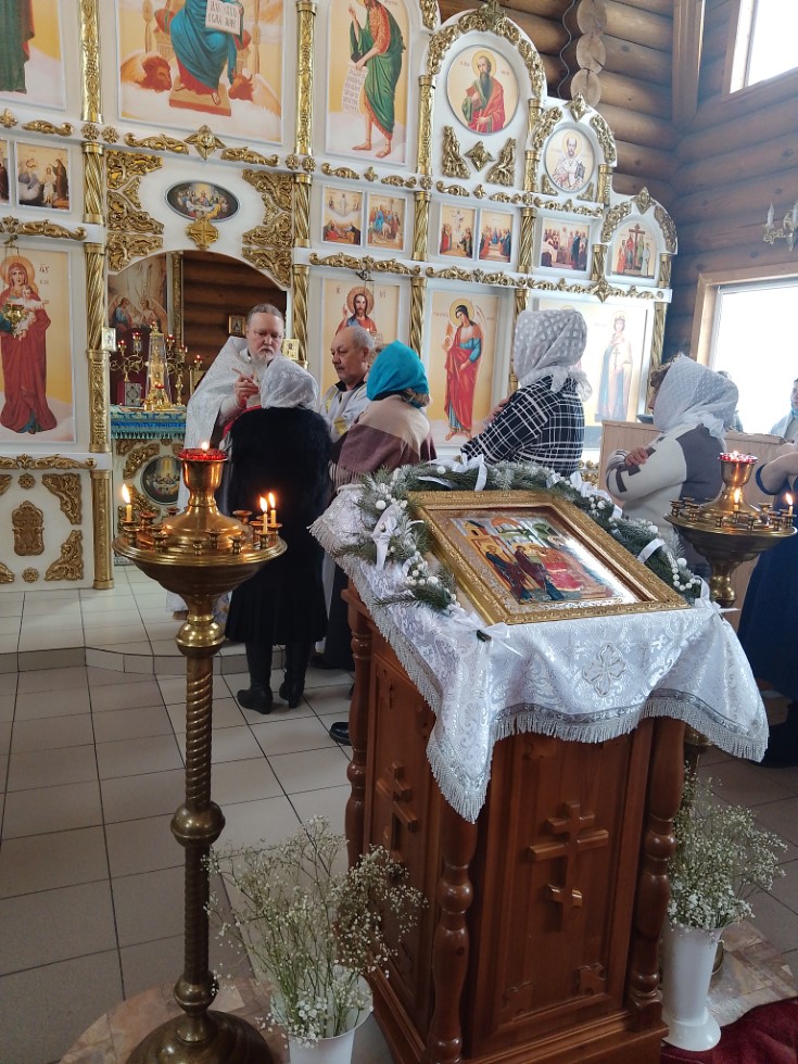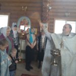В завершение богослужения настоятель совершил водосвятный молебен с освящением новых свечей и поздравил всех присутствующих с праздником:
