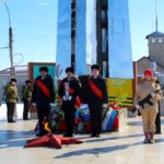 Завершился митинг церемонией возложения цветов к Монументу славы. Алые гвоздики и другие цветы легли к подножию памятника, олицетворяя вечную память о героях, отдавших свои жизни за Родину.