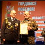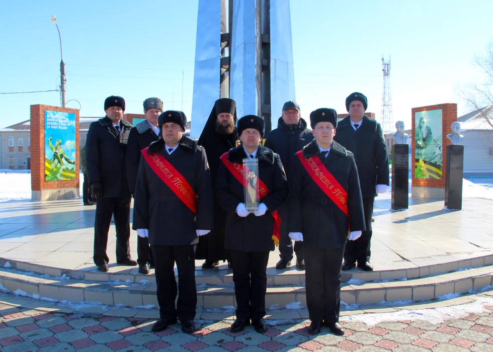 Пограничниками был доставлен на митинг символ «Эстафеты» – статуэтка в виде пограничного столба, с изображением Ордена Отечественной войны и символики юбилея Победы.