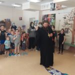 И в этот раз они с нетерпением и радостью встретили архипастыря у входных дверей и, обменявшись Пасхальным приветствием, провели его в игровую группу, где состоялся пасхальный концерт.