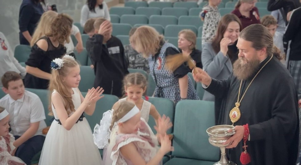 Он также побеседовал с детьми о празднике Святой Пасхи, о женах-мироносицах, которые первыми увидели Воскресшего Спасителя, о чуде схождения Благодатного огня накануне православной Пасхи на Гробе Господнем в Иерусалиме, который символизирует нерукотворный свет Воскресения Христова.