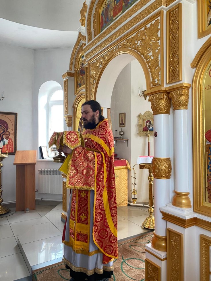 2 мая, в день памяти св. блаж. Матроны Московской, иерей Антоний Нечепоренко совершил Божественную литургию в храме во имя св. равноапостольного великого князя Владимира г. Карасука.