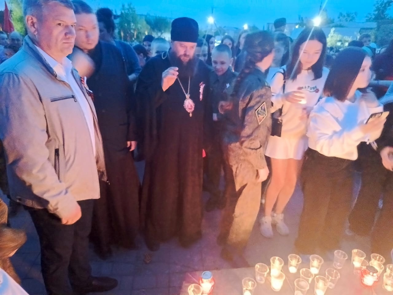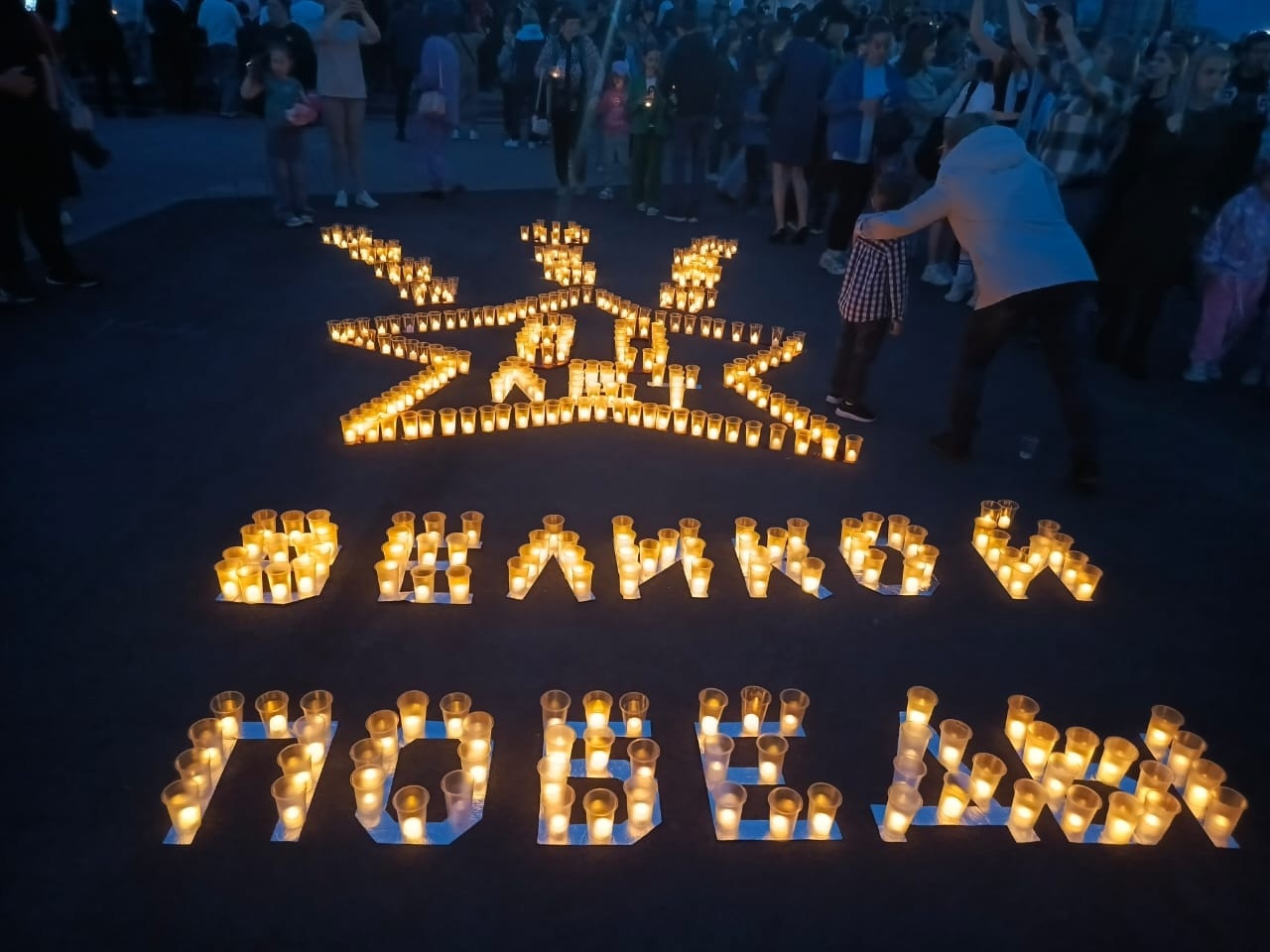 У Мемориала Воинской Славы собрались жители города, гости и все неравнодушные, чтобы выразить свою глубокую признательность и уважение подвигу предков. Юнармейцы удостоились чести первыми зажечь свечи у Вечного огня. Мерцающие огни сотен свечей стали символом вечной памяти и благодарности.