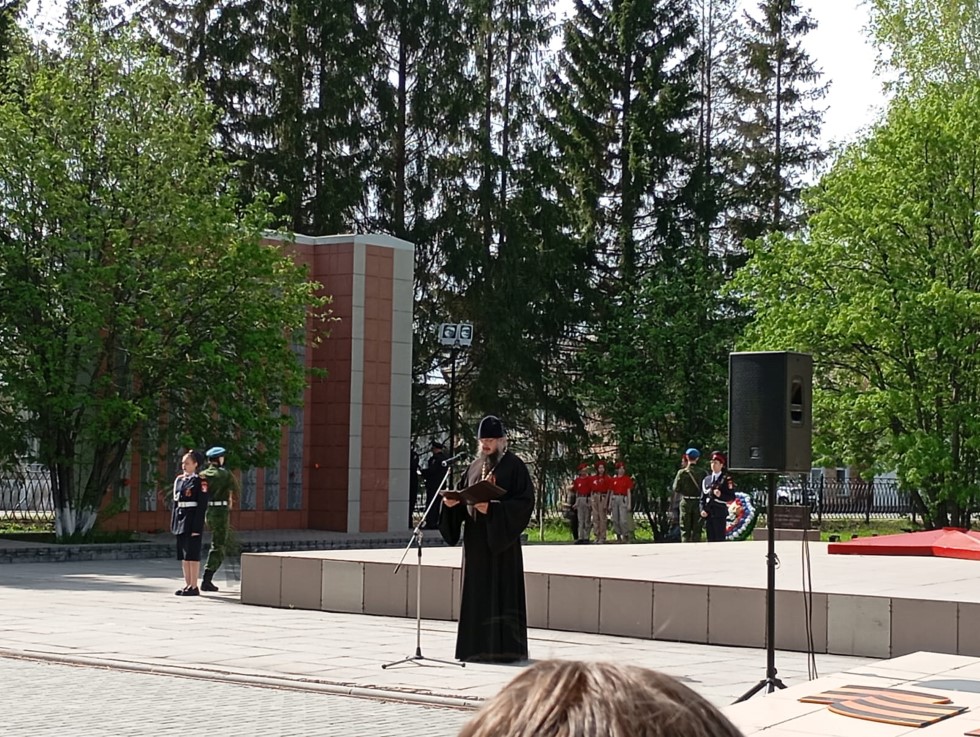 Настоятель храма во имя преподобного Сергия Радонежского с. Довольного протоиерей Андрей Гусев и прихожане доволенского храма приняли участие в торжественных мероприятиях, приуроченных к празднованию 80-летия Победы в Великой Отечественной войне 1941-1945 гг.