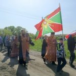 Далее крестный ход направился в с. Благовещенку Купинского района, названную так в честь великого праздника Божией Матери, где пограничники и жители села установили поклонный Крест, который был освящен во время Крестного хода вдоль Государственно границы России и Республики Казахстан ровно 10 лет назад — в 2015 г.
