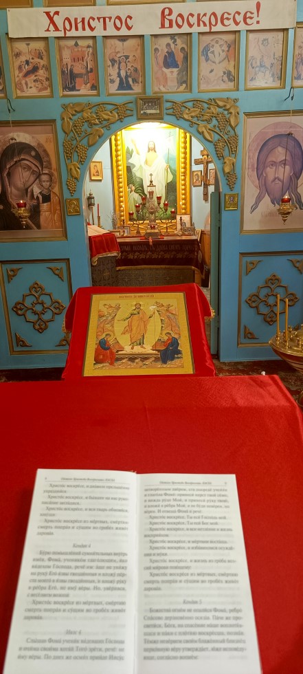 В этот день в ордынском храме «Неопалимая Купина» был совершен праздничный молебен с чтением акафиста Воскресения Христова! После чего храм был переоблачен из красных в белые одеяния и теперь происходит ожидание следующего праздника!