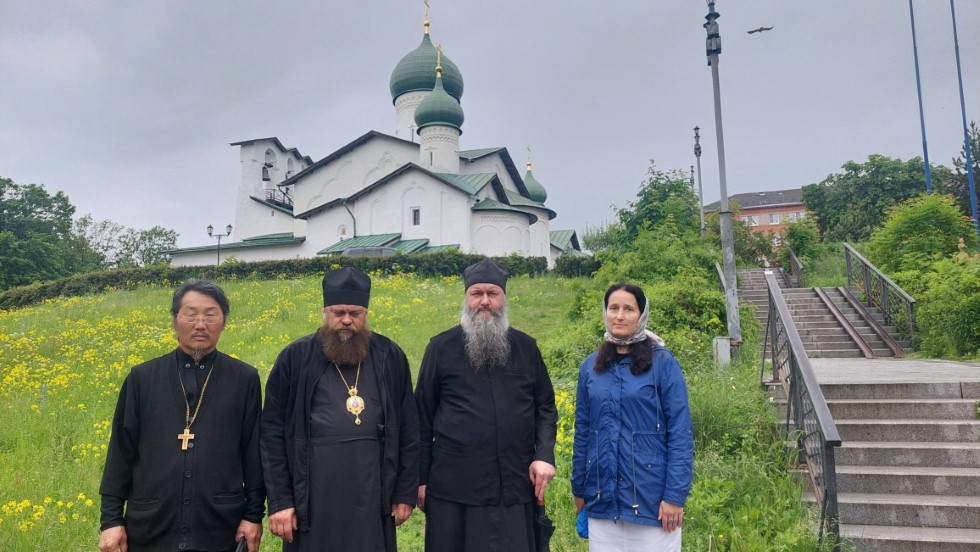 Его Высокопреосвященству сослужили епископ Карасукский и Ордынский Филипп; насельники Свято-Успенского Псково-Печерского монастыря – архимандрит Филарет (Кольцов), иеромонах Прохор (Андрейчук), иеромонах Никон (Горохов); настоятель Свято-Троицкого кафедрального собора города Пскова иеромонах Алексий (Годлевский) с соборным духовенством, настоятель храма святого благоверного великого князя Александра Невского города Пскова иерей Александр Короплясов, гости праздника в священном сане.