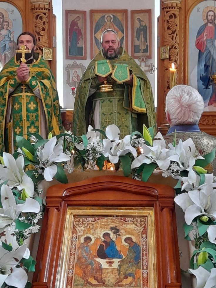 В день Святой Троицы в храме в честь Успения Пресвятой Богородицы районного поселка Чистоозерное была совершена Божественная литургия соборным служением.