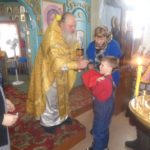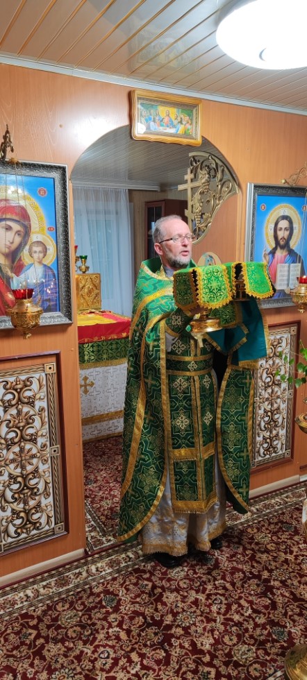 Верующие храма во имя прп. Сергия Радонежского р.п. Краснозерское встретили праздник Святой Троицы всенощным бдением с пятью хлебами и Божественной литургией, за которой все прихожане причастились Святых Христовых Таин.