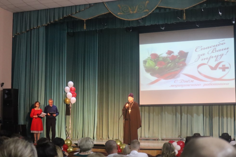 11 июня, в день памяти святителя Луки исповедника, архиепископа Симферопольского, иеромонах Мелхиседек посетил торжественное мероприятие, посвященное Дню медицинского работника, которое проходило во Дворце Культуры г. Купино. Иеромонах Мелхиседек поздравил всех собравшихся с праздником, рассказал о святителе Луке, архиепископе Симферопольском – враче-хирурге, о первом враче-подвижнике Владимире Николаевиче Россове, основателе медицины на Купинской земле. В завершении батюшка преподнес в благословение икону святителя Луки исповедника, архиепископа Симферопольского, Дмитрию Александровичу Чурсину, главному врачу ГБУЗ НСО «Купинская ЦРБ» и благословил присутствующих медицинских работников на дальнейшее служение народу.