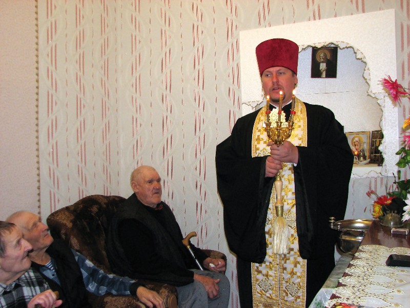 По окончании молебна иеромонах Мелхиседек обратился со словом назидания к собравшимся и поздравил семью Сергея Павловича и Валентины Владимировны Дегтяревых с 45-летием совместной жизни в браке, вручив им в благословение икону Спасителя и Казанскую икону Пресвятой Богородицы.