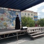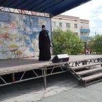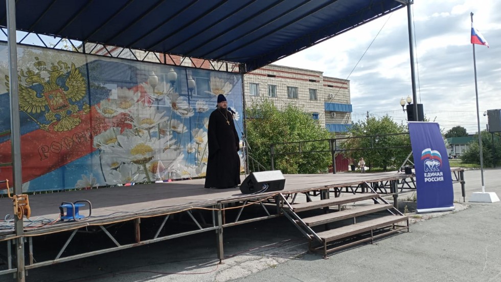 Священник со сцены обратился к пришедшим с назидательным словом о любви к своей Родине, о сохранении духовных традиций и о ценности православной веры. Сотрудники Доволенской центральной библиотеки и Доволенского историко-краеведческого музея организовали чтение стихов о Родине в микрофон, артисты ДСКО исполнили патриотические песни о России.