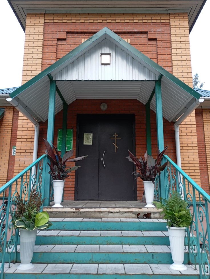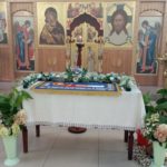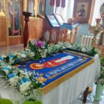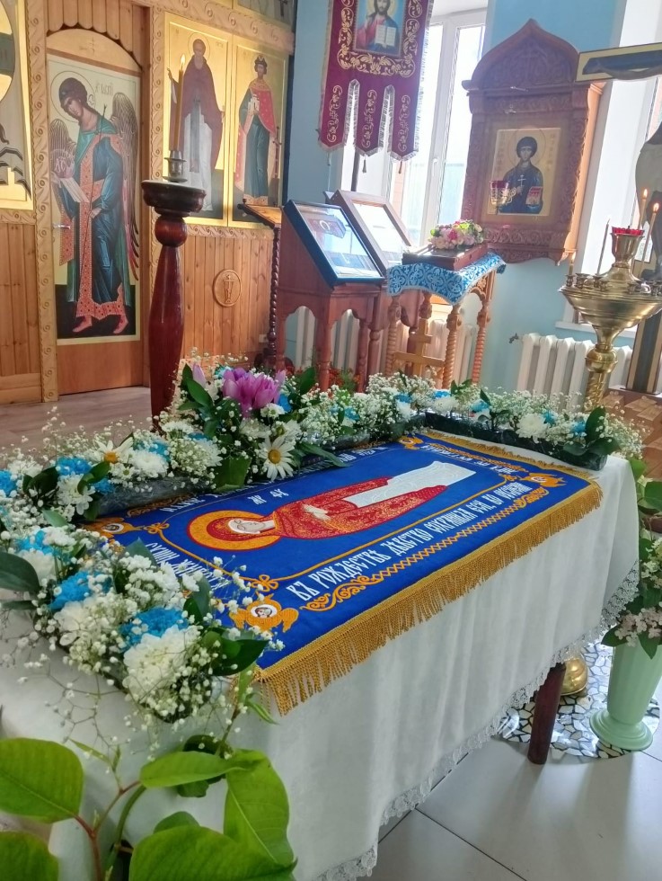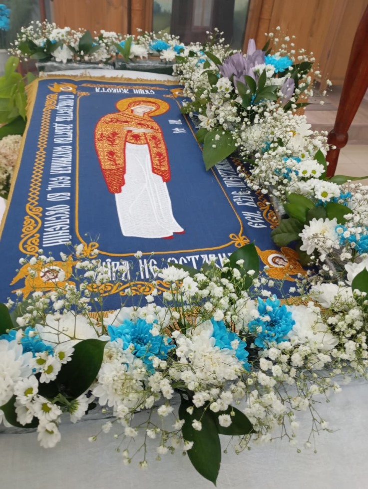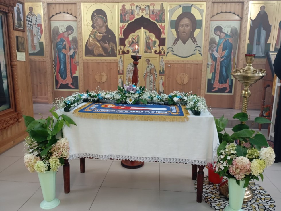 В храме во имя преподобного Сергия Радонежского с. Довольного до начала праздничного всенощного бдения прихожане приготовили цветочное украшение для Плащаницы Божией Матери, украсили храм внутри и на паперти.