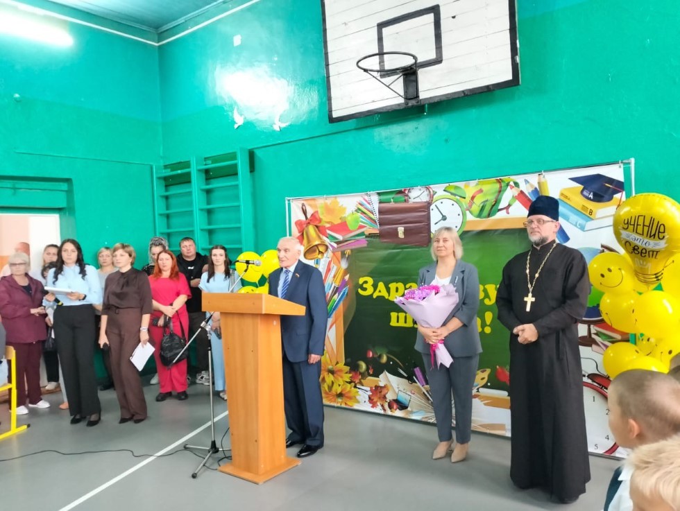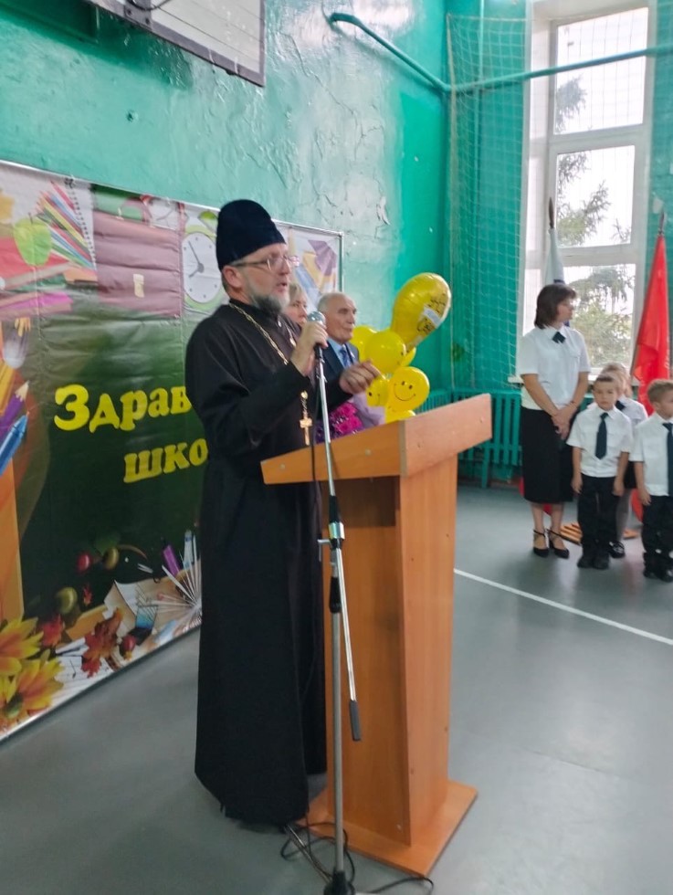 1 сентября настоятель храма во имя прп. Сергия Радонежского р.п. Краснозерское протоиерей Евгений Зверев посетил основную общеобразовательную школу р.п. Краснозерское, где на торжественной линейке поздравил всех с новым учебным годом, пожелав помощи Божьей в учебном году.