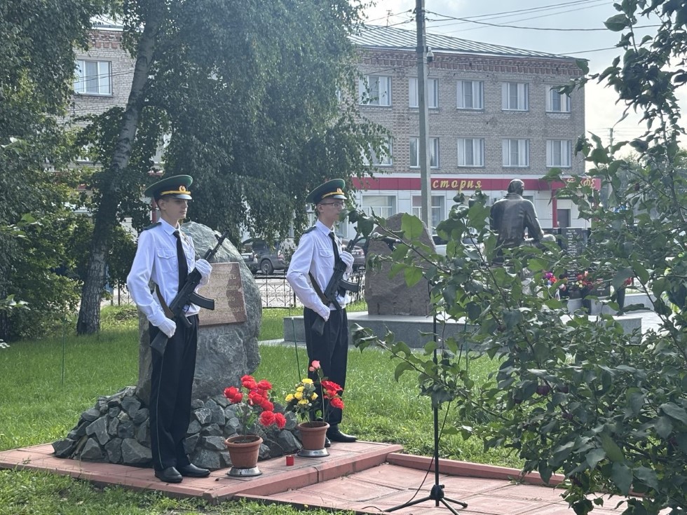 У памятного камня «Вечная память безвинно погибшим от неразумного бытия человеческого» священник помолился о невинно убиенных и сказал о патриотическом воспитании молодежи. Затем батюшка с молодыми людьми возложил цветы и зажег свечи в знак памяти и скорби.