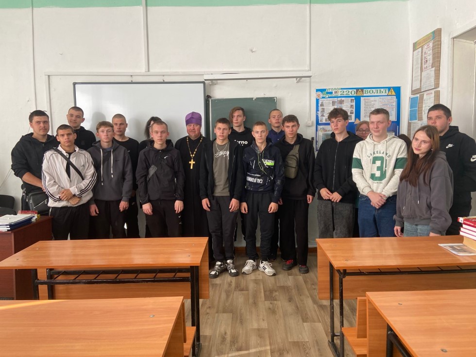 26 сентября в рамках утвержденного плана Правительства Российской Федерации по сохранению и укреплению традиционных российских духовно-нравственных ценностей в Здвинском лицее для обучающихся первых курсов 4 и 5 групп была организована встреча с иереем Михаилом Прутом, настоятелем храма во имя святого апостола и евангелиста Иоанна Богослова с. Здвинска.