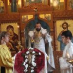 После великого славословия был совершен крестный ход с Честным Крестом до храма во имя святого апостола и евангелиста Луки города Купино, где богослужение и завершилось.