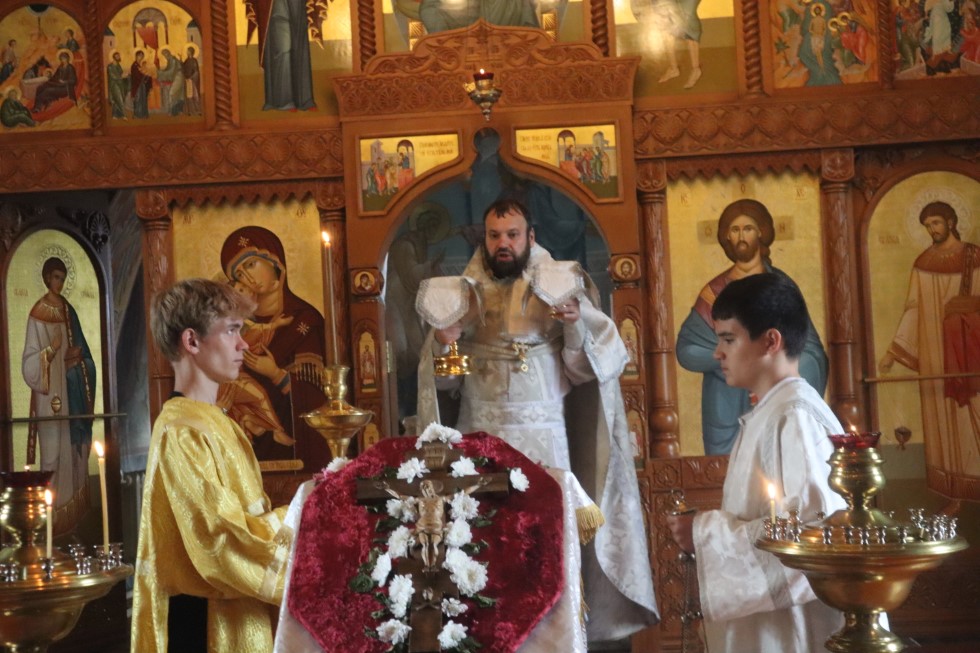 14 августа, в день Происхождения (изнесения) Честных Древ Животворящего Креста Господня и исторический День Крещения Руси, в Преображенском храме города Купино иеромонах Мелхиседек (Свистелин), благочинный Центрального округа Карасукской епархии, совершил праздничное всенощное бдение.