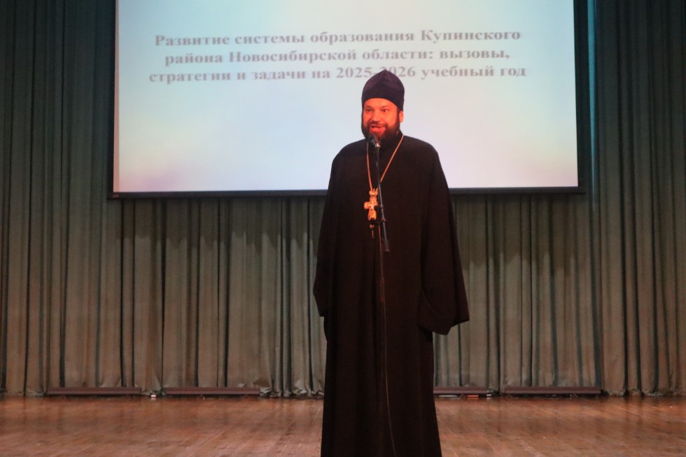 29 августа иеромонах Мелхиседек (Свистелин), благочинный Центрального округа Карасукской епархии, принял участие в Августовской конференции работников образования на тему: «Развитие системы образования Купинского района Новосибирской области: вызовы, стратегии и задачи на 2025–2026 учебный год», которая прошла в районном Дворце Культуры г. Купино.