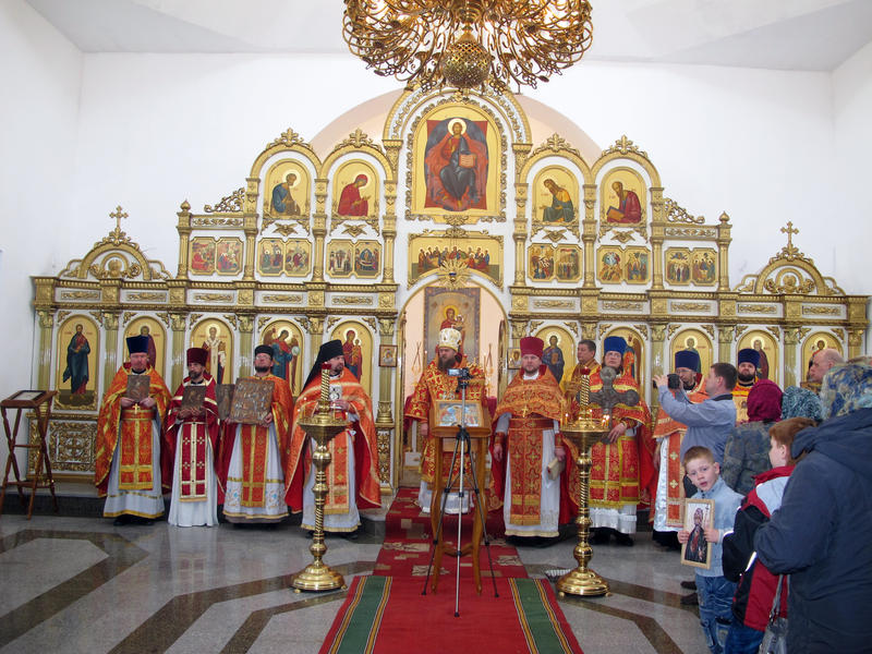 Специально на этот молебен из храмов Карасукской и Ордынской епархии священнослужителями были привезены иконы и крест, подвергшиеся поруганию в трагический период богоотступничества в XX веке.