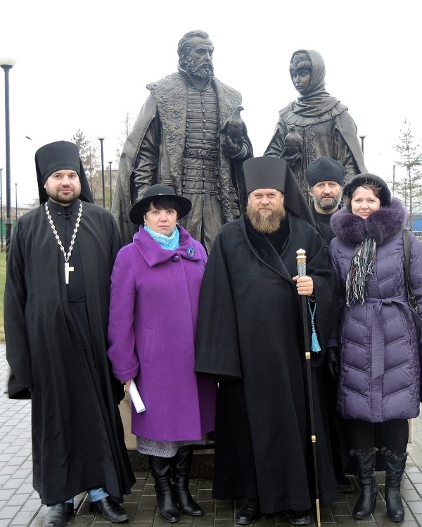После обеда епископ Филипп, представители администрации Купинского района, протоиерей Константин Работа и участники миссионерского поезда посетили новый памятник св. благоверным Петру и Февронии, Муромским чудотворцам.