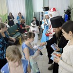 И на этот праздник сюда приезжают не только воспитатели, но и многие выпускники со своими детьми, которые давным-давно вышли из стен этого детского дома. И для них дети устраивают Рождественский праздник, А затем Владыка окропляет всех святой водой и раздаёт детям Рождественские подарки и иконы.