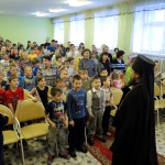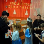 После концерта епископ Лука и епископ Филипп поздравили детей с праздником, окропили их святой водой и раздали календари, иконы и рождественские подарки.