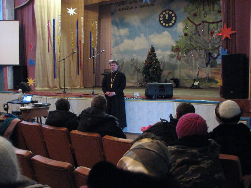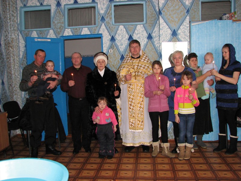 Священников встретили глава сельской администрации Пинчуков Александр Николаевич и директор клуба Кузьмин Александр Дмитриевич. Батюшек здесь уже ждали местные жители. По окончании беседы желающие смогли принять Таинство Крещения.