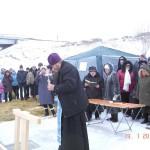 В 13 часов был совершён водосвятный молебен. Глава села Александр Алексеевич и священник Александр поздравили всех собравшихся с Крещением Господним, и сразу же выстроилась очередь на купание.