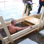 Удивительно, что по купающимся людям не видно было, что им холодно. Наоборот, радостные бодрые улыбки, духовный подъём, радость праздника. Купаются и те, кому за 60, и даже четырехлетний малыш плакал, что ему не разрешили купаться.