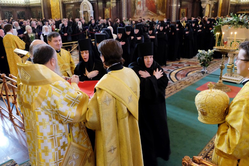 На богослужении присутствовали полномочный представитель Президента РФ в Центральном федеральном округе А.Д. Беглов, генеральный директор Государственной корпорации по атомной энергии «Росатом» С.В. Кириенко, председатель Синодального информационного отдела В.Р. Легойда, руководитель Художественно-производственного предприятия «Софрино» Е.А. Пархаев, помощник председателя Правительства Российской Федерации Г.Г. Онищенко, настоятельницы женских обителей, священнослужители Москвы и Подмосковья, сотрудники синодальных и иных церковных структур, представители приходских советов, преподаватели и учащиеся церковных учебных заведений.