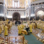 За Литургией пели хор Храма Христа Спасителя (регент — Илья Толкачев) и Московский синодальный хор (регент — заслуженный артист России Алексей Пузаков).