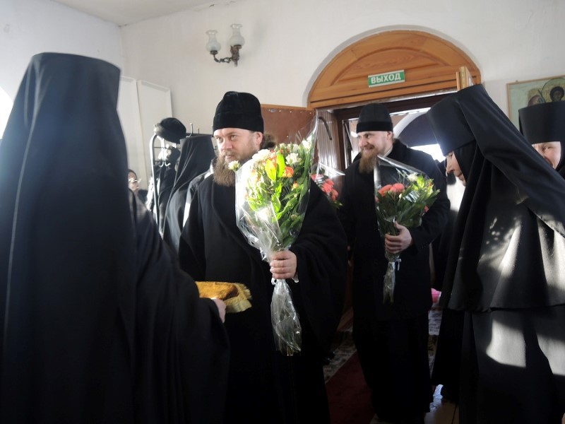 По окончании молебна состоялась праздничная трапеза, за которой владыка Артемий и владыка Николай рассказали о служении в своих епархиях, о тех трудных условиях, в которых им приходится нести своё послушание Богу, Церкви и его народу. В заключении игуменья Мария показала владыкам подсобное хозяйство монастыря.