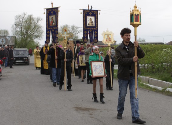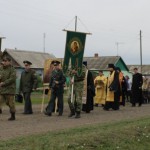 В 8 часов утра православные христиане с Иверской иконой Пресвятой Богородицы прошли от заставы до часовни в Новокрасном. После молебна возле часовни во имя прп. Илии Муромца Владыка выступил с приветственным словом, рассказал о целях крестного хода, подарил окружающим Казанские иконы Божьей Матери.