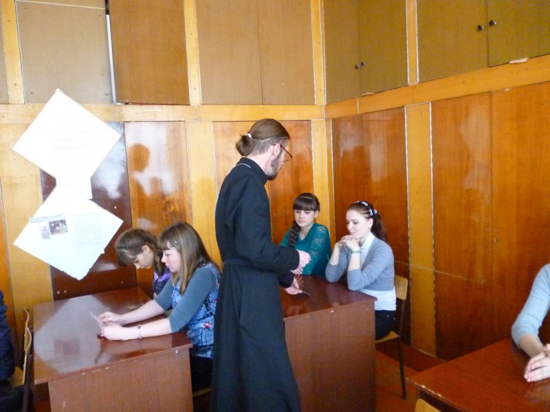 Иерея Сергия Шишова, штатного священника Кафедрального собора г. Карасука, пригласили и в педагогический колледж, где студенткам 2-го курса была зачитана полуторачасовая лекция на тему: «Роль Библии в формировании мировоззрения современной человеческой цивилизации».
