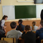 Затем иеромонах Мелхиседек принял участие в собрании с родителями третьего класса школы и побеседовал о выборе предмета ОПК в учебном курсе ОРКСЭ.