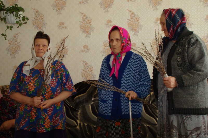 Батюшка поздравил всех живущих в этом доме с праздником и совершил молебен с освящением верб.