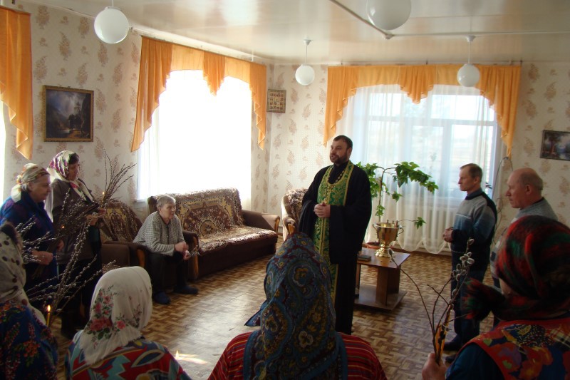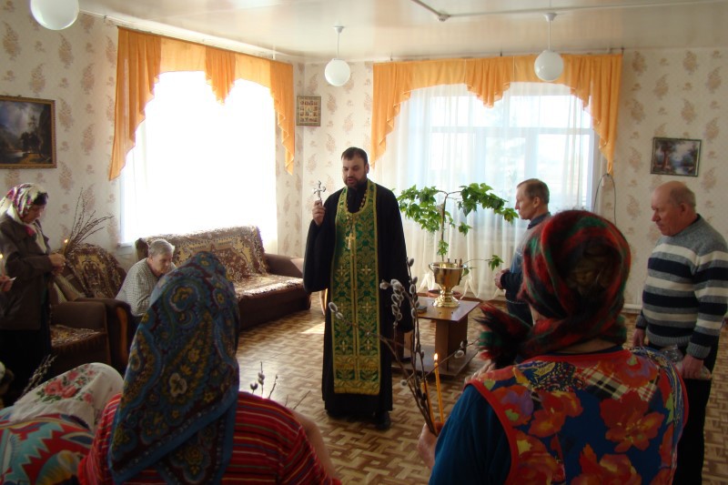 12 апреля/суббота. В преддверии праздника Входа Господня во Иерусалим иеромонах Мелхиседек (Свистелин), благочинный Центрального округа Карасукской епархии, посетил Дом престарелых города Купино.