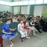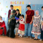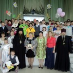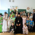 После концерта Владыка рассказал детям о великом событии — Воскресении Христовом. Потом все вместе помолились и спели тропарь Воскресения Христова, после чего Владыка окропил их святой водой, раздал им пасхальные яйца и сладкие подарки. На этот раз каждый ребенок получил и краткий молитвослов.