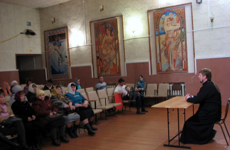 Так уже через два дня отец Роман повстречался с учащимися 5-6 классов в стенах храма, дав им основные понятия об устройстве православного храма и его убранстве. «Ребята с большим интересом и любознательностью ехали в районный центр на встречу к батюшке, — рассказывает школьный библиотекарь Левина Ольга Николаевна, руководитель кружка духовно-нравственного воспитания, — так как большинство школьников в храме побывали впервые в жизни».