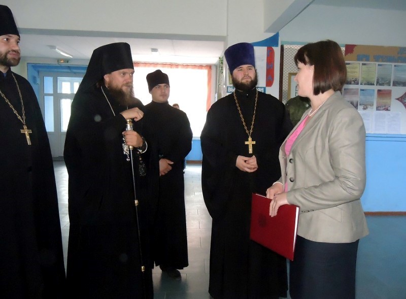Он напомнил учителям и школьникам, что сегодня, в день памяти свв. равноапостольных братьев Кирилла и Мефодия, по территории Карасукской епархии проходит крестный ход, посвященный 700-летию со дня рождения прп. Сергия Радонежского, и пожелал выпускникам благополучно сдать выпускные экзамены и поступить в высшие учебные заведения.