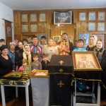 Здесь Владыка с детьми отслужил краткий молебен Пресвятой Богородице, после чего всех детей окропили святой водой. Затем они набрали с собой святой воды и прошли в открытую купальню.