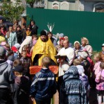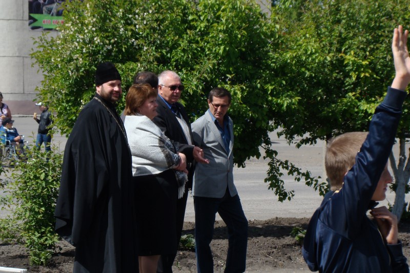 Раздавшийся колокольный звон собрал всех участников празднества на молитву виновникам торжества, равноапостольным Кириллу и Мефодию. По окончании молебна иеромонах Мелхиседек (Свистелин), благочинный Центрального округа Карасукской епархии, рассказал о значении трудов равноапостольных братьев Кирилла и Мефодия и поздравил всех с праздником.